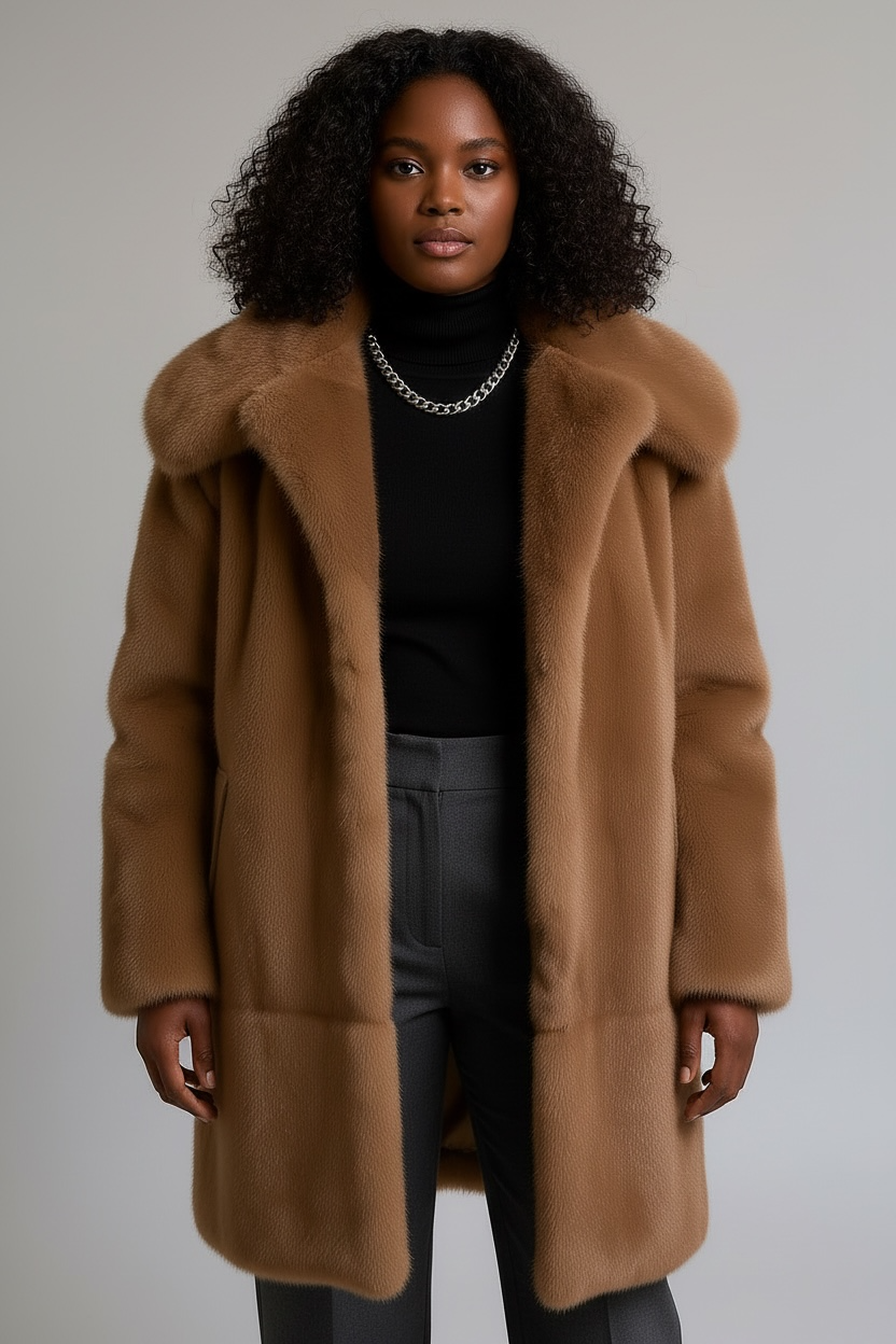 Like New Greek Mink Fur Coat with Double-Sided Hood – Size EU 52 (US 14 / XL to XXL)