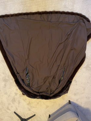 A timeless and powerful statement piece, this vintage men’s ranch mink coat is crafted from beautifully matched let-out pelts, creating long, fluid vertical lines that enhance both movement and silhouette. The rich dark brown ranch mink offers a deep, glossy finish with a luxurious density and softness.