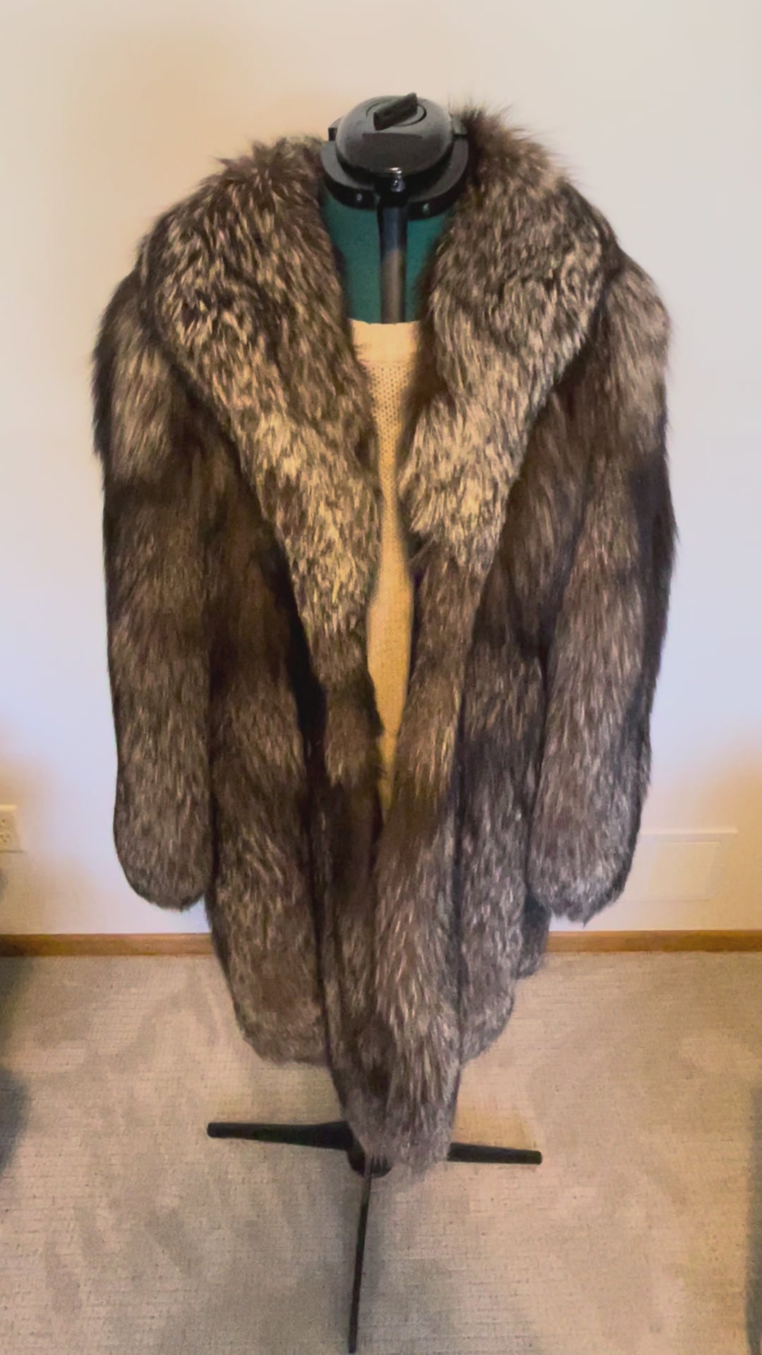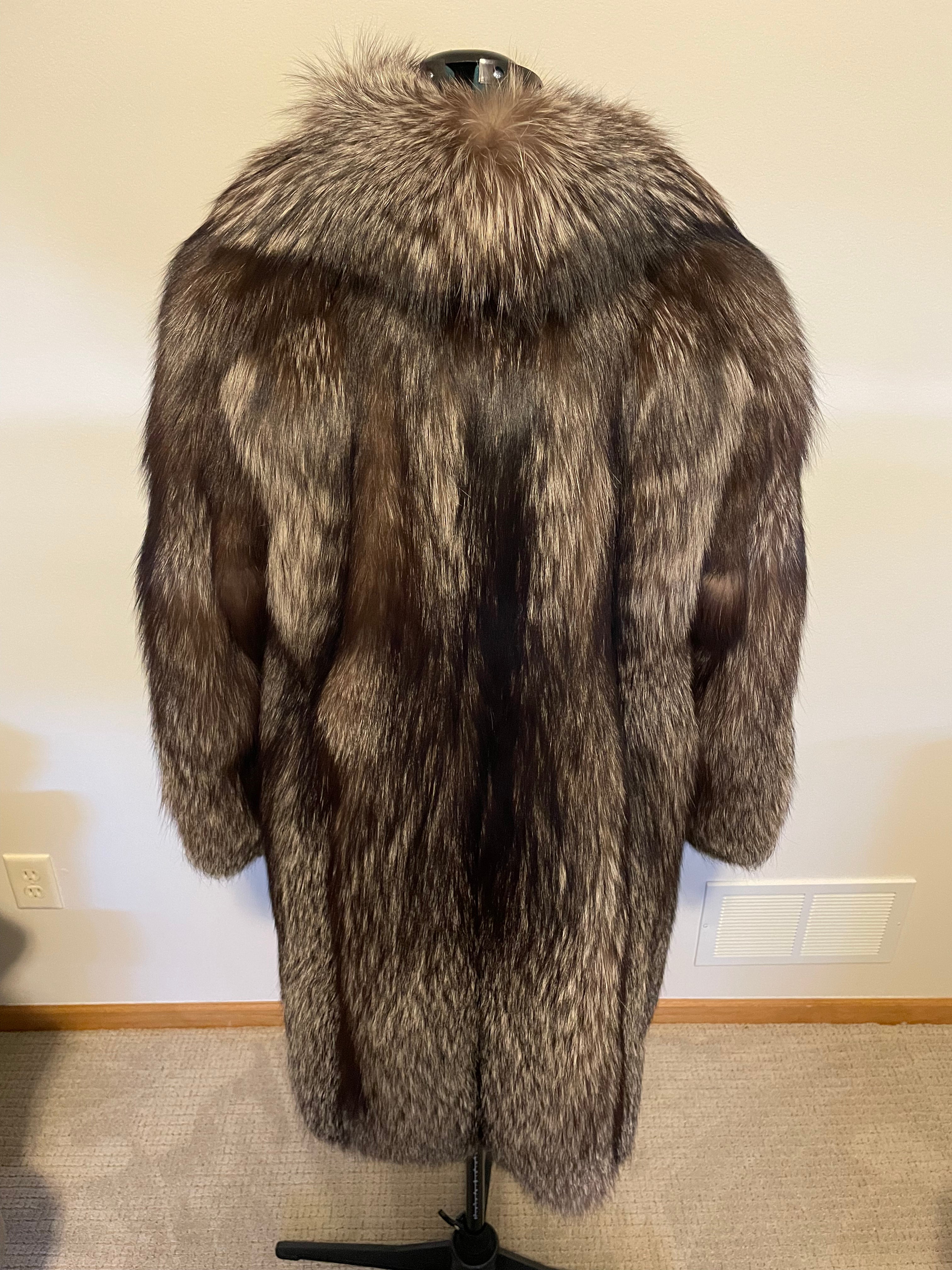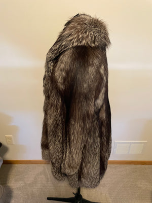 Vintage Stroller Length Silver Fox Fur Coat with Oversized Shawl Collar Size Medium to Small Large
