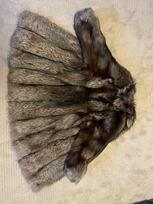 - Construction: Large vertical fox pelts, matched for symmetry and depth